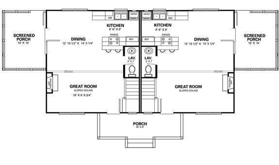 Duplex Style with Full Kitchen, 140 Square Foot Screened